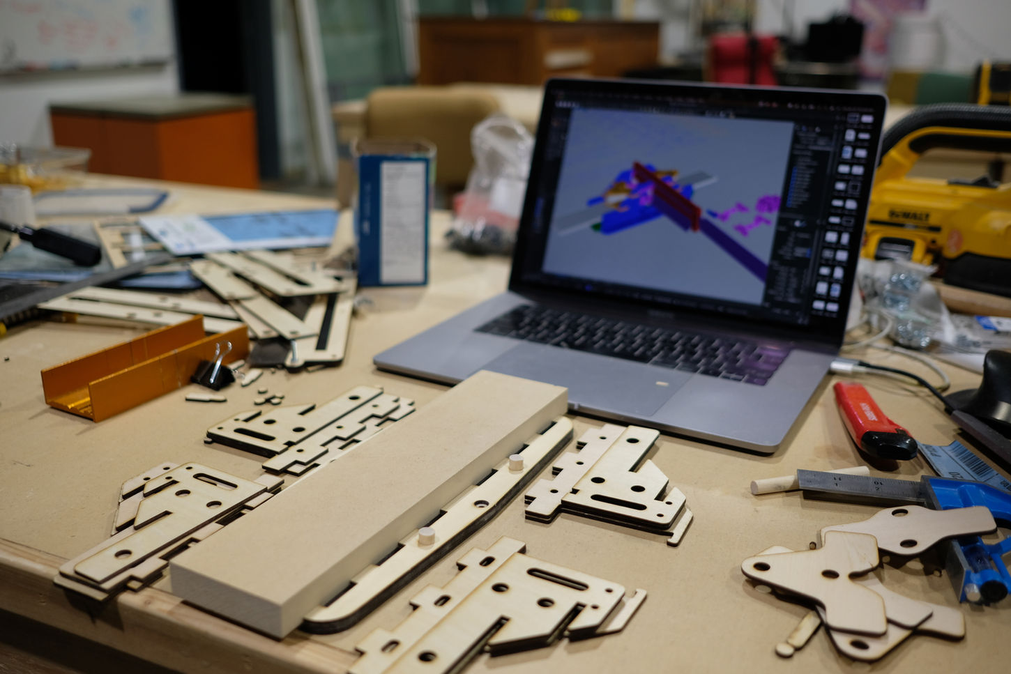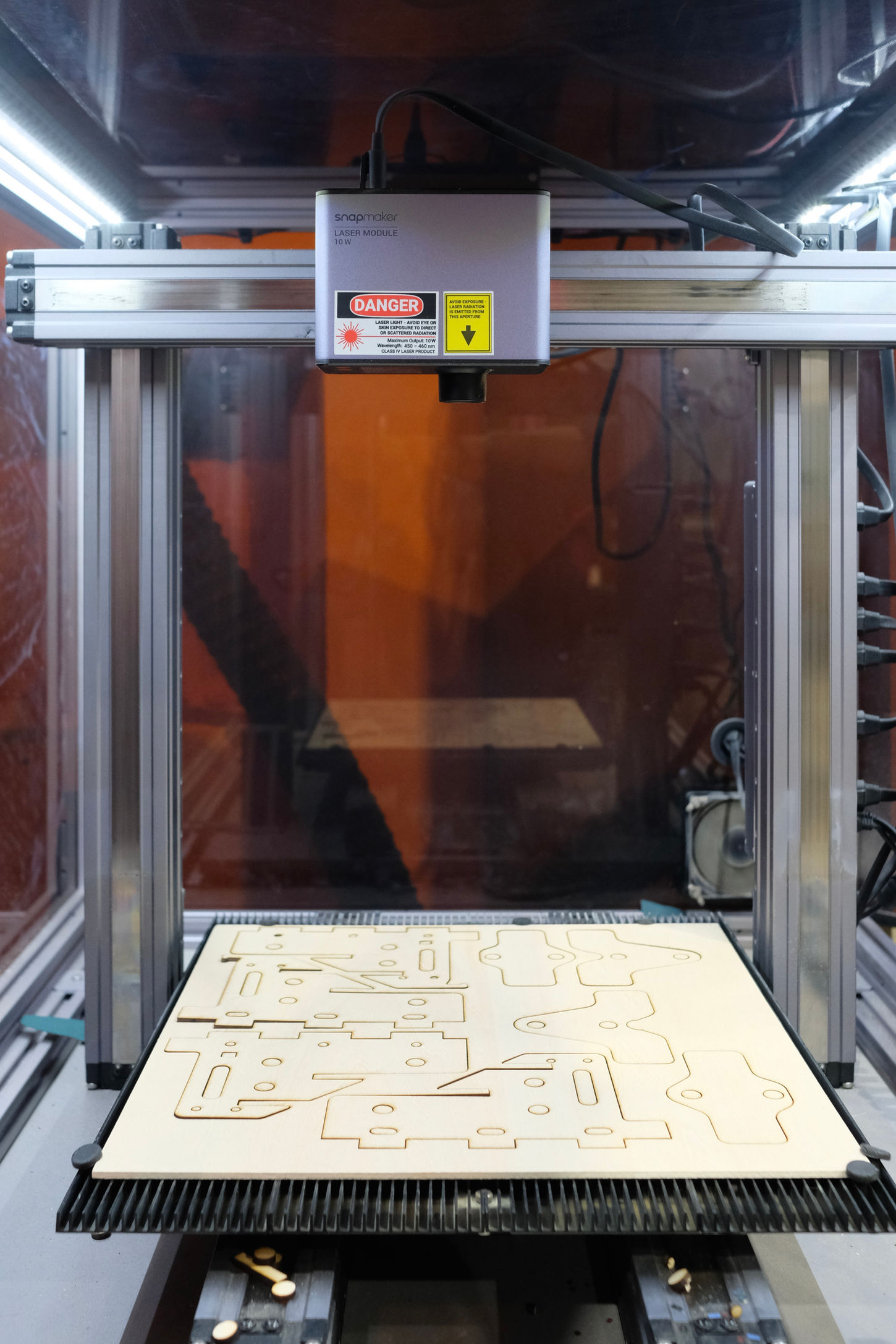 As with most of my projects, every steps was an opportunity to learn something new. I based the mechanisms off existing professional jigs and other keen DIYers. The entire jig was designed and modelled in Rhino, then components were exported for laser cutting and 3D printing. The jig came together with some wood glue and handful of hardware components, bearings, nuts, and bolts.